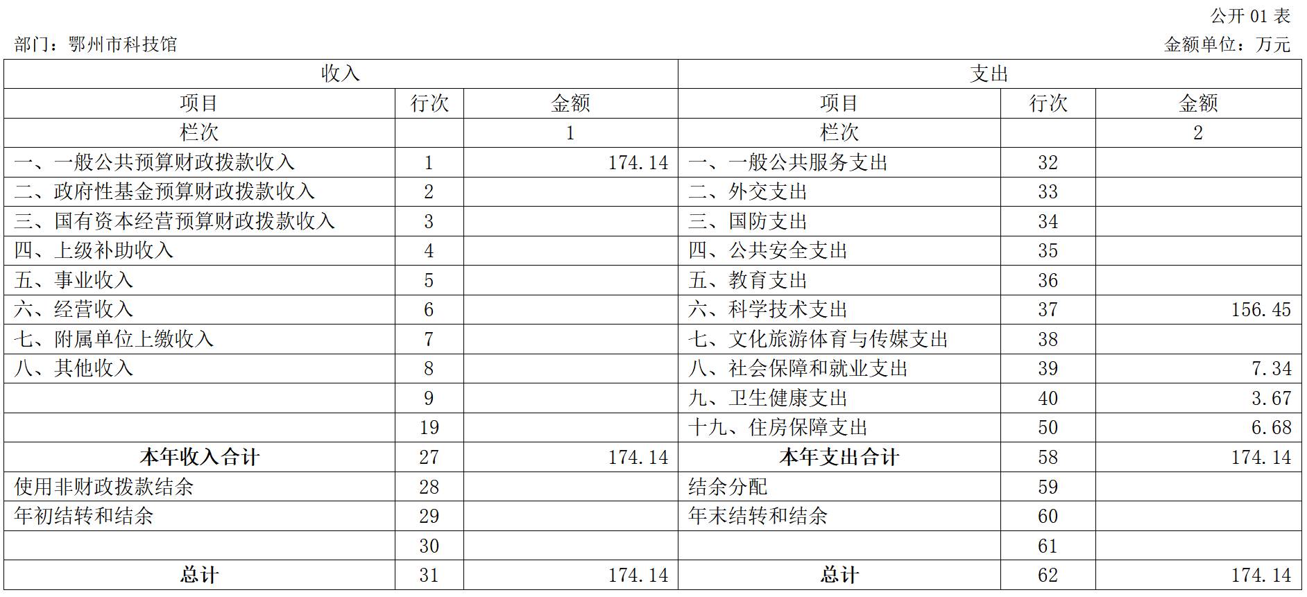 第四部分 鄂州市科技館2021年單位決算表