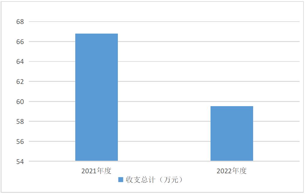 2022年度收、支總計(jì)均為59.51萬(wàn)元。與2021年度相比,收、支總計(jì)各減少7.28萬(wàn)元,下降 10.9 %,主要原因是2022年一名在職人員轉(zhuǎn)入退休人員。