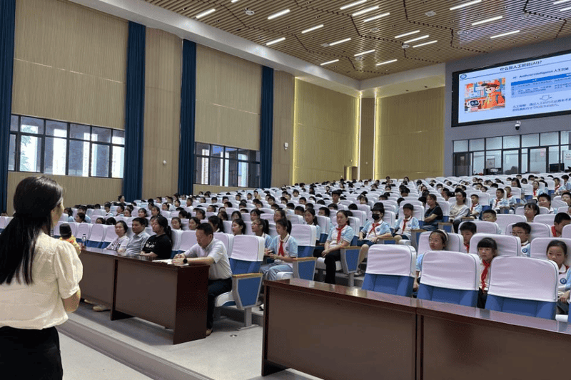 鄧教授以“什么是AI?——你好,智能新朋友”為切入點,用生動語言和貼合學(xué)生生活的實例,揭開人工智能神秘面紗,讓深奧概念更易理解。她從同學(xué)們常用的語音助手、智能推薦系統(tǒng)講起,結(jié)合互動問答,引導(dǎo)大家思考AI如何融入學(xué)習(xí)生活。接著,通過視頻演示AI在圖像識別、自動駕駛等領(lǐng)域的應(yīng)用案例,深入解析技術(shù)原理,讓學(xué)生感受AI從概念到現(xiàn)實的跨越。講AI發(fā)展歷程時,她提及科學(xué)家攻堅克難的故事,鼓勵同學(xué)們保持好奇心、培養(yǎng)嚴(yán)謹(jǐn)思維,勇于提問和嘗試。講座中,同學(xué)們專注聆聽、踴躍提問,現(xiàn)場氣氛熱烈有序,科學(xué)種子在互動與思考中播撒。