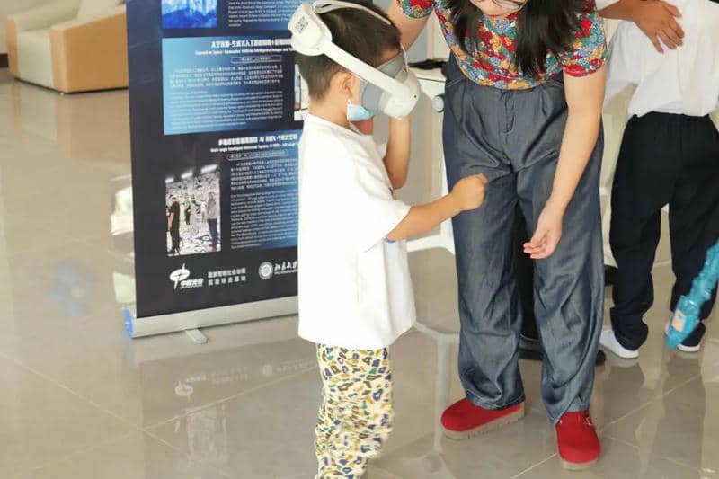 現場還特別引入文明一萬年?智能社會體驗館項目。這是由北京大學武漢人工智能研究院打造的科普展項,集成AI大語言模型、AIGC等前沿技術,結合人類文明發(fā)展印記創(chuàng)作。在初心號觀察倉的CAVE多屏協同沉浸式空間,能探索未來星際;VR大空間里,“小北”與“小武”引領穿梭古今,虛擬與現實交互讓文明與科技生動交融。該項目還斬獲聯合國教科文組織創(chuàng)新案例獎等多項榮譽,登上《科學》雜志,為開放日再添科技與文化深度融合的魅力。