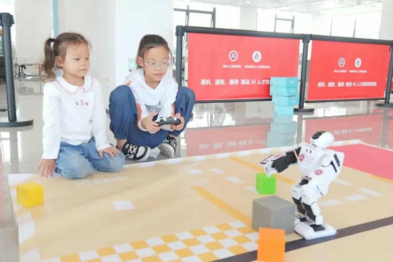 智能創(chuàng)客挑戰(zhàn)賽與生成式AI體驗區(qū),是孩子們揮灑創(chuàng)意的“靈感天地”。在這里,每個孩子都成了“小小創(chuàng)造者”:有人用AI生成充滿想象力的童話故事,有人設計出專屬的機器人圖案,還會驕傲地舉著作品向家長展示:“你看!這是我畫的機器人,它能幫媽媽做家務!”“我讓AI寫的童話里,有會飛的書本呢!”